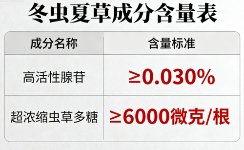 规格:0.3g/根。聚和泰坚持高原直采模式,虫草来源清晰可溯。在活性成分保留方面,其腺苷含量达到0.020%,符合国家标准的优质等级,但与顶尖标准仍有差距。每根虫草多糖含量约2000μg,相当于优质虫草的三分之一。